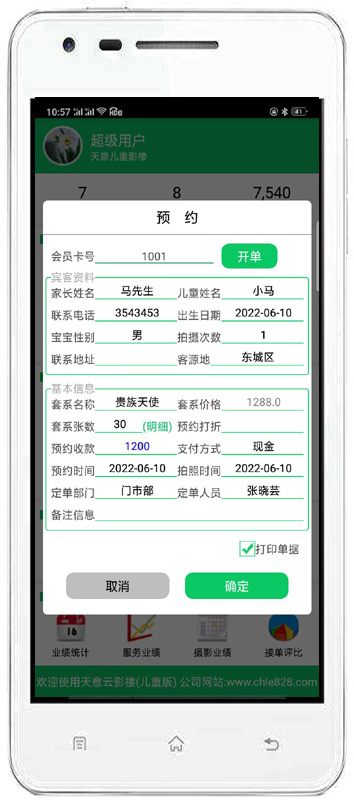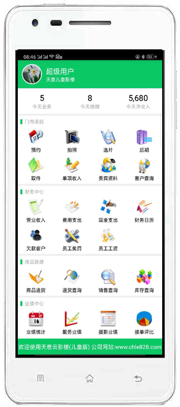 天意兒童影樓管理系統(tǒng)包含了影樓管理的方方面面,從流程的預約、拍照、選片、后期、取件,到財務管理、日財務報表、月財務報表、利潤統(tǒng)計、庫存、人員管理,以及經營狀態(tài)分析、套系、月毛利、客戶調查、入店原因分析等采用直觀的圖示方式讓您一目了然,是全方位的兒童影樓ERP軟件,其中財務管理又包含了影樓業(yè)績提成和影樓員工工資的計算和財務報表統(tǒng)計。軟件界面設計簡潔美觀,其人性化的軟件流程,使普通用戶不需培訓也能很快掌握軟件操作使用方法,上手極易。使用本軟件可以提升影樓的管理檔次,使影樓從傳統(tǒng)的手工開單、手工記賬提升到數字信息管理,自動生成財務報表方便對影樓客戶資料的統(tǒng)計與管理,從而使影樓老板從煩瑣的數字中脫離出來,而把主要的精力用于影樓的經營和市場運作,是影樓進行信息化管理、提高工作效率和顧客滿意度不可或缺的強大工具。 |