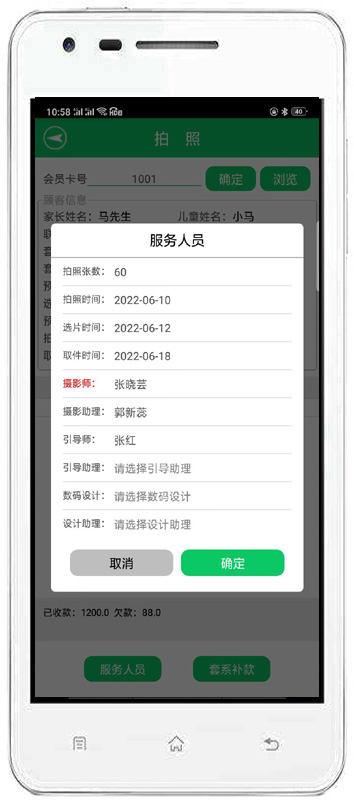 | 1、基本設置:對本軟件一些基本信息的設置,包括有:部門設置、員工設置、商品設置、套系設置、客源地設置、工資提成等設置。 | |||