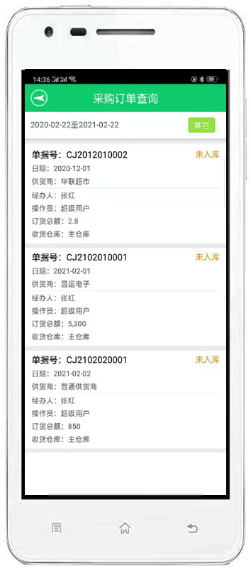 | 進貨管理:進行商品采購入庫,采購退貨,進/退單據(jù)和當前庫存查詢,與供貨商的往來帳務。 | |||