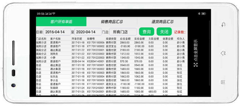 | 銷(xiāo)售管理:進(jìn)行商品銷(xiāo)售,顧客退貨,銷(xiāo)/退單據(jù)和當(dāng)前庫(kù)存查詢(xún),與客戶(hù)的往來(lái)帳務(wù)。 | |||