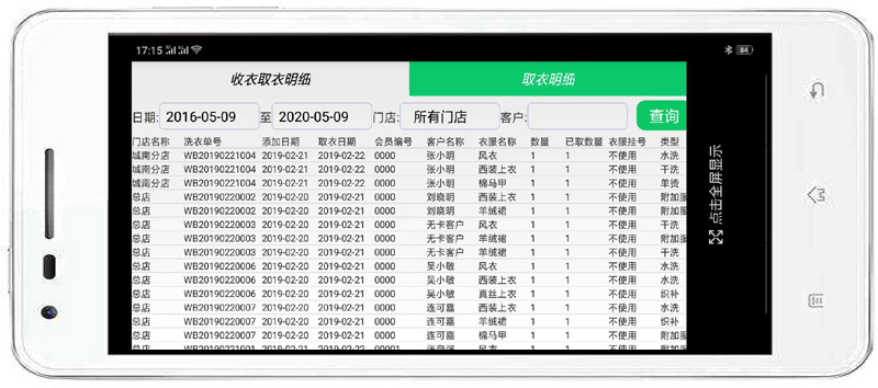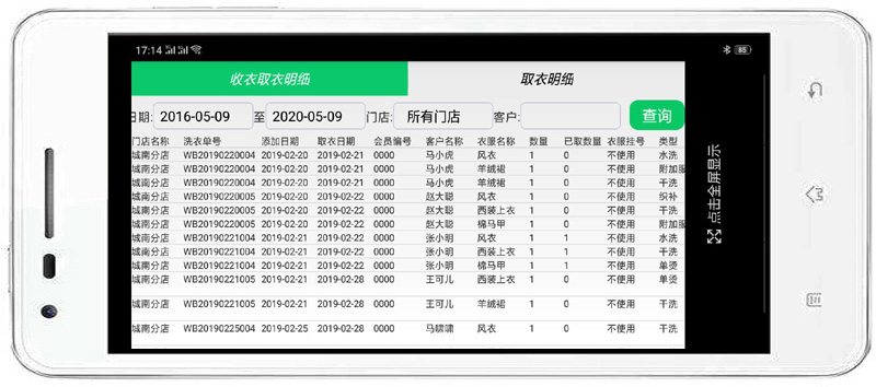 | 領(lǐng)取衣物:客戶憑洗衣收據(jù),來取走已洗好的衣物。包括取衣結(jié)單,返回重洗,退賠衣物,撤消 單據(jù)等功能。取衣結(jié)單即洗衣客戶來取衣時,所做的操作。如果您的客戶要求重洗衣物(退賠衣物,撤消單子),您可以選擇返回重洗功能,該功能要求您選擇要重洗的衣物(退賠衣物,撤消單子)。 | |||