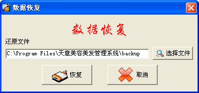 | ·點(diǎn)擊菜單“系統(tǒng)維護(hù)→數(shù)據(jù)恢復(fù)”進(jìn)入數(shù)據(jù)恢復(fù)界面。 ·系統(tǒng)默認(rèn)備份路徑是當(dāng)前文件夾下的backup,如恢復(fù)其它路徑中的備份文件,可點(diǎn)擊“選擇文件”按鈕來更改恢復(fù)路徑,點(diǎn)擊“恢復(fù)”按鈕進(jìn)行數(shù)據(jù)恢復(fù)。 |