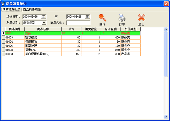 | 2.6.6 商品消費(fèi)統(tǒng)計(jì): 功能 用于查詢本店商品消費(fèi)情況。 | |||