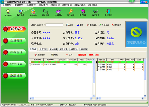 天意寵物店管理系統(tǒng)是一款專門為寵物行業(yè)設(shè)計(jì)的專業(yè)寵物管理軟件,廣泛適用于寵物美容、寵物店等經(jīng)營場(chǎng)合,天意寵物店管理系統(tǒng)具有強(qiáng)大的會(huì)員管理、套餐管理、員工管理等功能,方便的票據(jù)打印,簡(jiǎn)潔實(shí)用的庫存管理,帶有客戶回訪功能,能計(jì)算員工每月提成金額,詳細(xì)完備的統(tǒng)計(jì)報(bào)表,讓寵物機(jī)構(gòu)經(jīng)營者輕松管理,明白算賬,是寵物店進(jìn)行信息化管理、提高工作效率和顧客滿意度的強(qiáng)大工具。 |