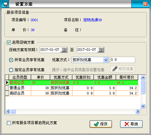 | 促銷方案:即可按折扣優(yōu)惠,也可按固定金額優(yōu)惠,可為一類會(huì)員單獨(dú)指定優(yōu)惠,也可以為所有會(huì)員統(tǒng)一優(yōu)惠; | ||