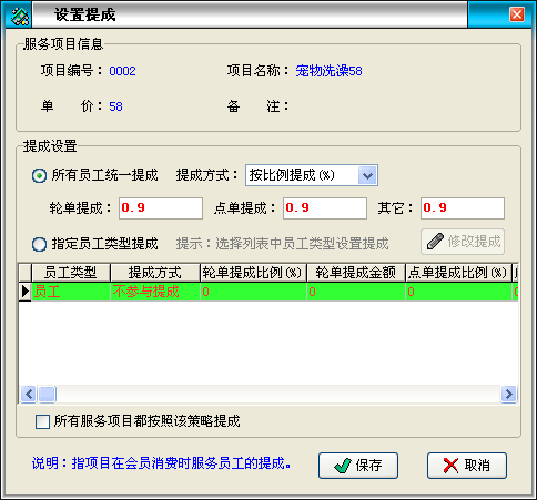 | 包括兩項(xiàng),儲(chǔ)值卡充值和套餐充值。充值可以贈(zèng)送金額,可以選擇員工進(jìn)行提成。