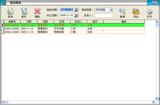 ·用來(lái)登記小區(qū)的保潔綠化活動(dòng),對(duì)每項(xiàng)活動(dòng)都可以責(zé)任到人,對(duì)營(yíng)建小區(qū)清潔優(yōu)美的環(huán)境起到了監(jiān)督管理的作用。 |
