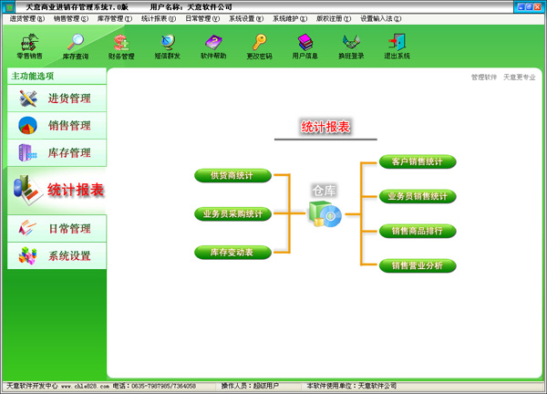 | 日常管理:對供貨商,客戶,業(yè)務(wù)員綜合管理,對日常收入支出管理,客戶借貨壞帳管理,合同管理。 |