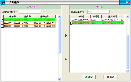 ·通過點(diǎn)擊主窗口中的菜單“收銀結(jié)賬→合并賬單”進(jìn)入合并賬單界面。 |