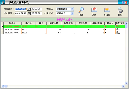 用于按收款人根據(jù)給定的時間分類查詢其收款明細(xì)。