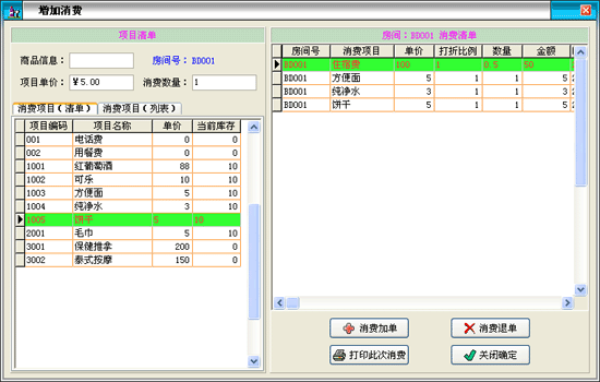 ·選定有消費(fèi)需求的賓客房間后雙擊此房間或點(diǎn)擊菜單“點(diǎn)單消費(fèi)→增加消費(fèi)”,進(jìn)入增加消費(fèi)界面。 |