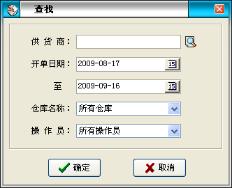 在查詢窗口中選擇相應(yīng)的條件可以更詳細(xì)的查詢單據(jù)。如果不選擇則默認(rèn)為所有的單據(jù)。 |