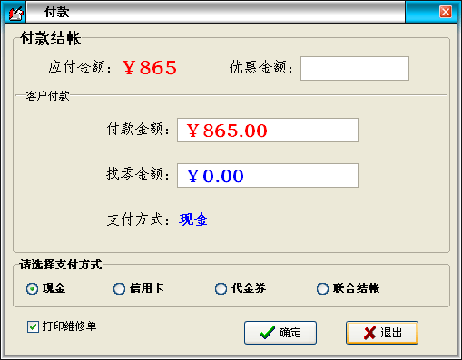 | 客戶結(jié)算:可能根據(jù)客戶進(jìn)行結(jié)算,也可以查詢單據(jù)號(hào)的方式進(jìn)行結(jié)算。完成對(duì)客戶未結(jié)算單據(jù)維修項(xiàng)目調(diào)整,客戶付款,對(duì)未結(jié)清單據(jù)進(jìn)行批量還款以及對(duì)未結(jié)清尾款進(jìn)行優(yōu)惠等操作。 | |||