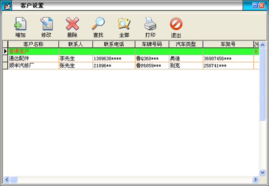 | 系統(tǒng)設(shè)置:包括配件資料、供貨商設(shè)置、客戶設(shè)置、員工設(shè)置、倉庫設(shè)置。 |