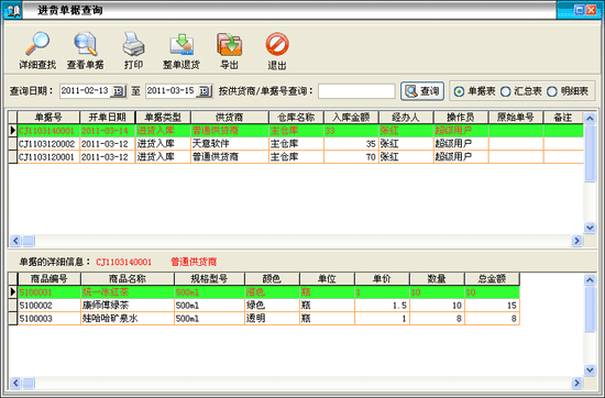 | 2.3.4 進貨單據(jù)查詢 |
