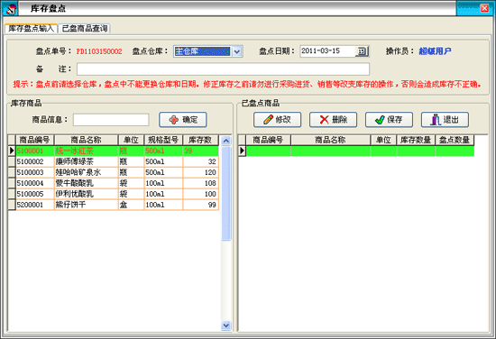 | 庫存管理:包括庫存之間商品調拔,商品的報損溢,強大的庫存盤點功能,庫存商品報警查詢。 |