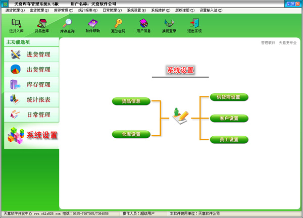 2.1 基本設置:在基本設置中可以對貨品信息、供貨商、客戶、員工、倉庫的設置