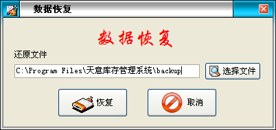 ·系統(tǒng)默認備份路徑是當前文件夾下的backup,如恢復其它路徑中的備份文件,可點擊“選擇文件”按鈕來更改恢復路徑,點擊“恢復”按鈕進行數(shù)據(jù)恢復。