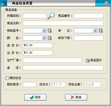 在貨品列表中點擊“增加”按鈕打開增加商品界面: