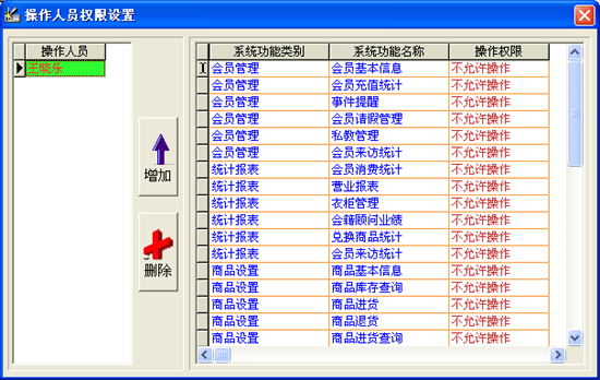 | 點(diǎn)擊系統(tǒng)維護(hù)中“操作權(quán)限”進(jìn)入操作權(quán)限界面如圖: | |||
