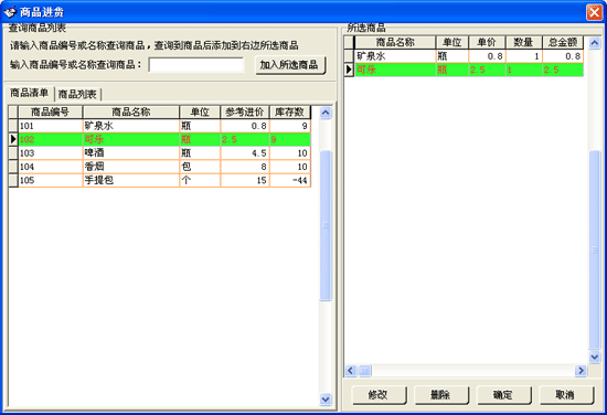 | 在商品設(shè)置中點(diǎn)擊“商品進(jìn)貨”進(jìn)入商品進(jìn)貨界面如圖: | |||