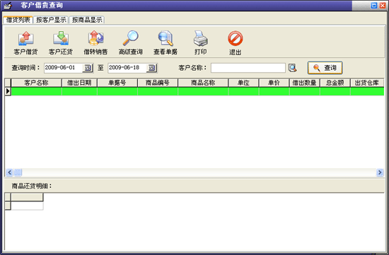| 2.7.5 客戶借貨管理:該模塊對客戶的借貨、還貨情況進(jìn)行管理。 |