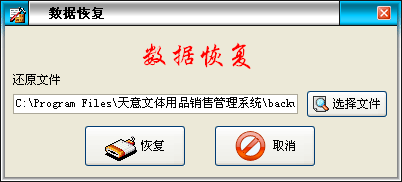 ·系統(tǒng)默認(rèn)備份路徑是當(dāng)前文件夾下的backup,如恢復(fù)其它路徑中的備份文件,可點擊“選擇文件”按鈕來更改恢復(fù)路徑,點擊“恢復(fù)”按鈕進(jìn)行數(shù)據(jù)恢復(fù)。