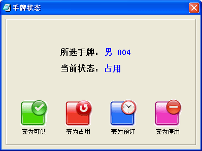 此項操作可手動修改處于非占用狀態(tài)的手牌狀態(tài)為”可供”、“預(yù)訂”、“停用”等狀態(tài)。