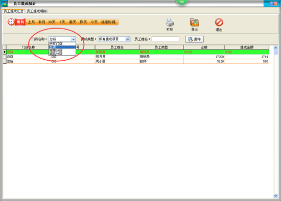 | 提成設(shè)置:統(tǒng)計某段時間內(nèi)商品入庫、出庫、銷售及帳務(wù)情況; | ||