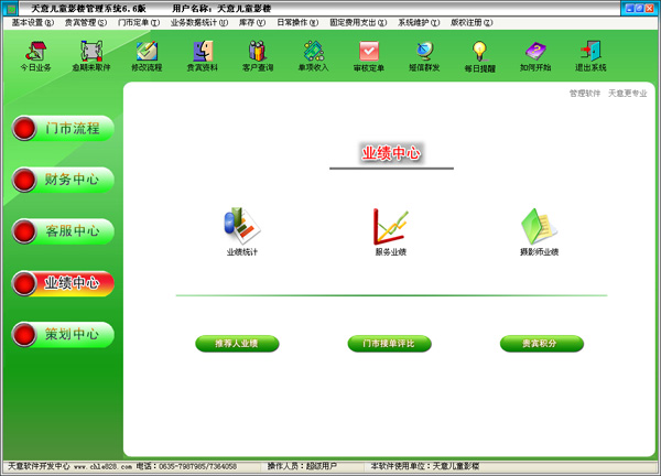 天意兒童影樓管理系統(tǒng)包含了影樓管理的方方面面,從流程的預(yù)約、拍照、選片、后期、取件,到財(cái)務(wù)管理、日財(cái)務(wù)報(bào)表、月財(cái)務(wù)報(bào)表、利潤(rùn)統(tǒng)計(jì)、庫存、人員管理,以及經(jīng)營狀態(tài)分析、套系、月毛利、客戶調(diào)查、入店原因分析等采用直觀的圖示方式讓您一目了然,是全方位的兒童影樓ERP軟件,其中財(cái)務(wù)管理又包含了影樓業(yè)績(jī)提成和影樓員工工資的計(jì)算和財(cái)務(wù)報(bào)表統(tǒng)計(jì)。軟件界面設(shè)計(jì)簡(jiǎn)潔美觀,其人性化的軟件流程,使普通用戶不需培訓(xùn)也能很快掌握軟件操作使用方法,上手極易。使用本軟件可以提升影樓的管理檔次,使影樓從傳統(tǒng)的手工開單、手工記賬提升到數(shù)字信息管理,自動(dòng)生成財(cái)務(wù)報(bào)表方便對(duì)影樓客戶資料的統(tǒng)計(jì)與管理,從而使影樓老板從煩瑣的數(shù)字中脫離出來,而把主要的精力用于影樓的經(jīng)營和市場(chǎng)運(yùn)作,是影樓進(jìn)行信息化管理、提高工作效率和顧客滿意度的強(qiáng)大工具。 |