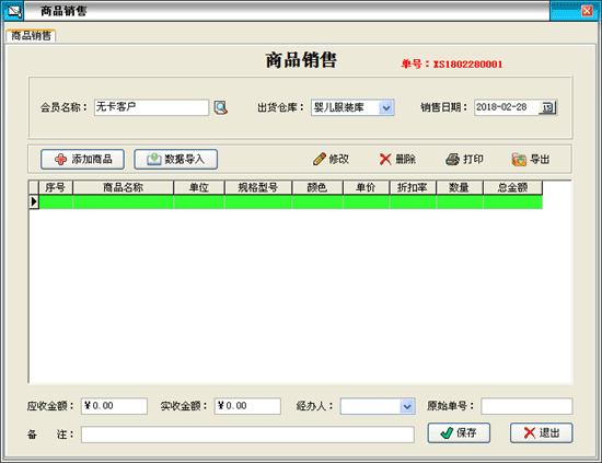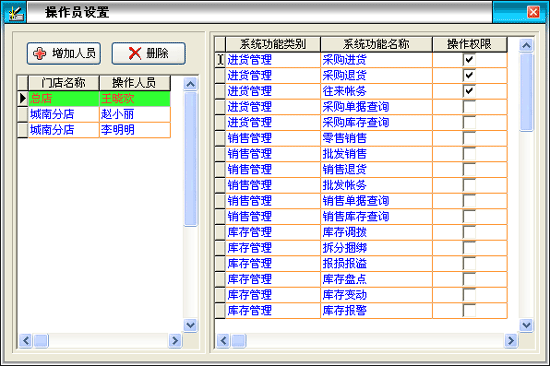 | 銷售管理:進(jìn)行商品銷售,顧客退貨,銷/退單據(jù)和當(dāng)前庫存查詢,與客戶的往來帳務(wù)。 | |||