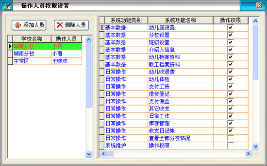 | 2、日常操作:主要包括幼兒收退費、幼兒體檢、支付工資、借貸登記、支付傭金、其它收支、日常工作、庫存管理等內(nèi)容。 | |||