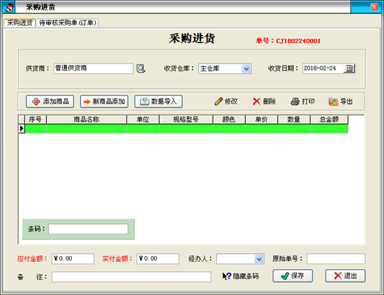 | 進貨管理:進行商品采購入庫,采購退貨,進/退單據(jù)和當前庫存查詢,與供貨商的往來帳務(wù)。 | |||