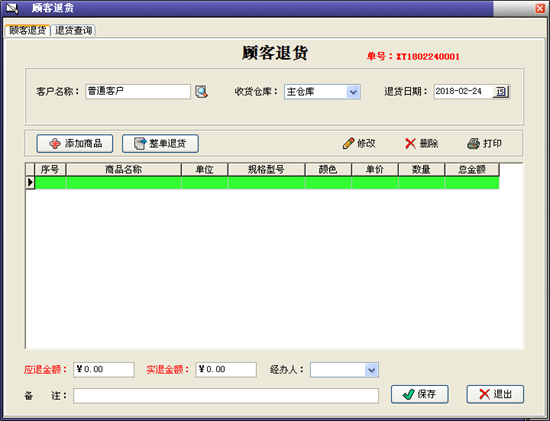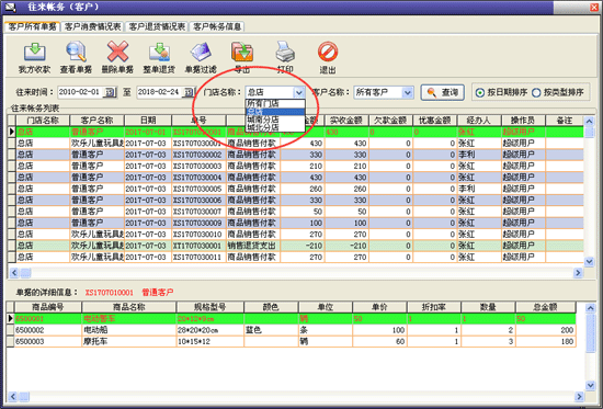 | 銷(xiāo)售管理:進(jìn)行商品銷(xiāo)售,顧客退貨,銷(xiāo)/退單據(jù)和當(dāng)前庫(kù)存查詢(xún),與客戶的往來(lái)帳務(wù)。 | |||