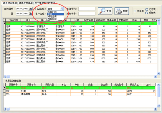 | 維修查詢:包括維修業(yè)務(wù)查詢、員工提成查詢等。 | |||