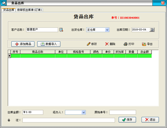 | 出貨管理:進(jìn)行貨品出庫(kù),客戶退貨,出/退單據(jù)和當(dāng)前庫(kù)存查詢,與客戶的往來(lái)明細(xì)。 | |||