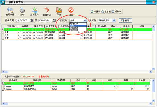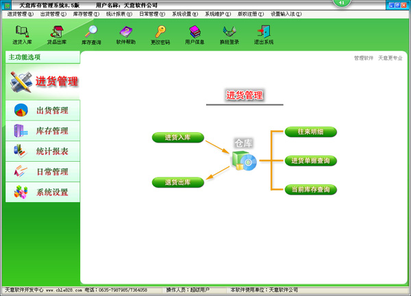 | 進(jìn)貨管理:進(jìn)行進(jìn)貨入庫(kù),退貨出庫(kù),進(jìn)/退單據(jù)和當(dāng)前庫(kù)存查詢,與供貨商的往來(lái)明細(xì)。 | |||