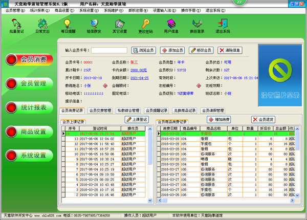 | 該功能可以對會員刷卡登記和會員消費店內(nèi)商品進(jìn)行管理。同時也可以管理兌換商品、充值、私教。 |