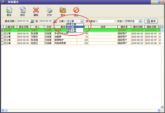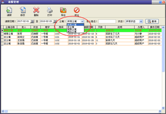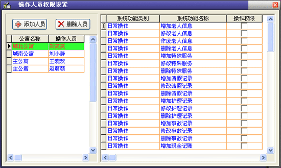 | 3、老人管理:主要包括入住管理、請假管理、特殊服務(wù)、辦理退住、護理記錄、事故記錄、生日提醒、媒介渠道對比等內(nèi)容。 | |||