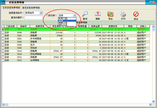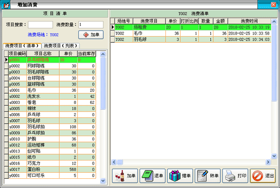 | 場地:場地可分為羽毛球場地、乒乓球場地和等其它場地(可任意添加多個場地),每個場地就具體到某一登記的賓客,一般把場地提供給一個客人后,在當前客人未退出占用狀態(tài)前暫時無法提供給另一個客人消費。此項目在系統(tǒng)設置中設置,在場地開單時使用。