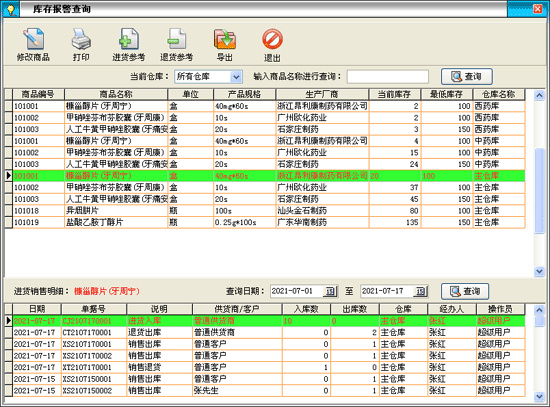 | 庫存管理:包括庫存之間商品調(diào)拔,商品的報(bào)損溢,強(qiáng)大的庫存盤點(diǎn)功能,庫存商品報(bào)警,藥品過期查詢。 | |||
