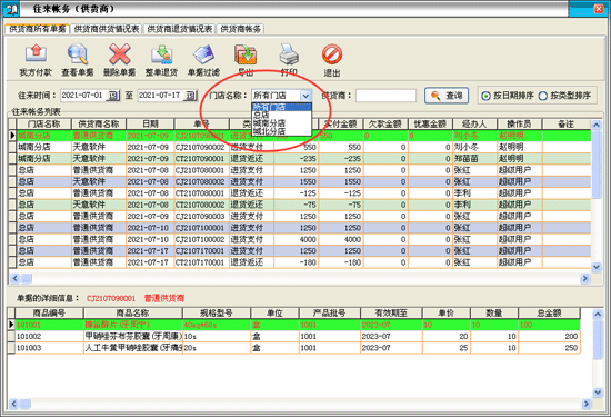 | 進(jìn)貨管理:進(jìn)行商品采購入庫,采購?fù)素?進(jìn)/退單據(jù)和當(dāng)前庫存查詢,與供貨商的往來帳務(wù)。 | |||