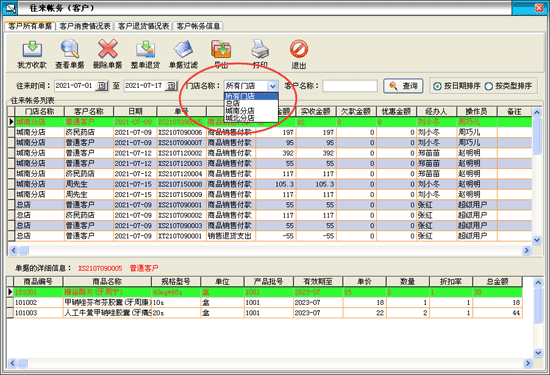 | 銷售管理:進(jìn)行商品銷售,顧客退貨,銷/退單據(jù)和當(dāng)前庫存查詢,與客戶的往來帳務(wù)。 | |||